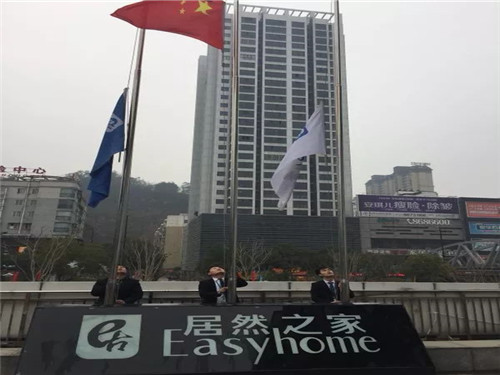 居然之家十堰店全體員工、商戶及銷售顧問(wèn)聚集在六號(hào)廳門外,舉行新年升國(guó)旗儀式,以飽滿的熱情喜迎“2019年,開(kāi)門紅”。